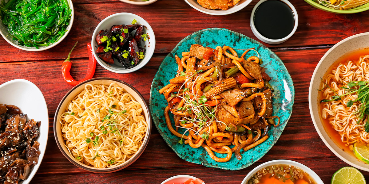 Křupavá kachna s orestovanou zeleninou a omáčkou dle výběru