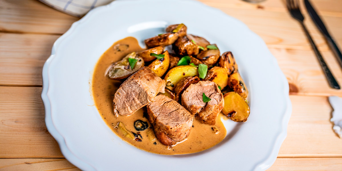 Čerstvé tagliatelle s vepřovými nudličkami a hnědým žampionem