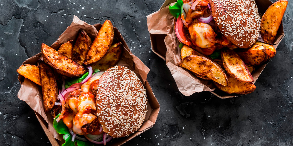 130g vyzrálého hovězího masa, omáčka z feferonek + chilli papriček a limety, 65g máslová houska, smash omáčka, šalotka, chedar